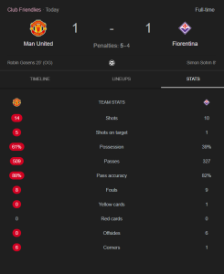 ผลการแข่งขัน : แมนฯยูไนเต็ด 1(5)-1(4) ฟิออเรนติน่า