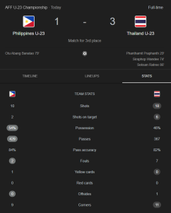 ผลการแข่งขัน : ฟิลิปปินส์ U23 1-3 ทีมชาติไทย U23