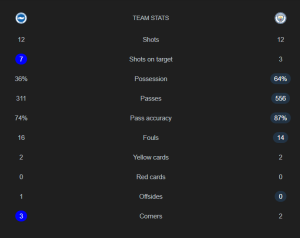 ผลการแข่งขัน : ไบรท์ตันฯ 2-1 แมนฯซิตี้