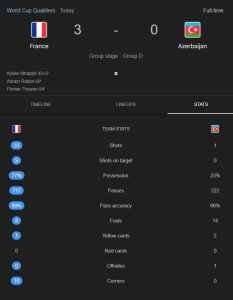 ผลการแข่งขัน : ฝรั่งเศส 3-0 อาร์เซอร์ไบจาน